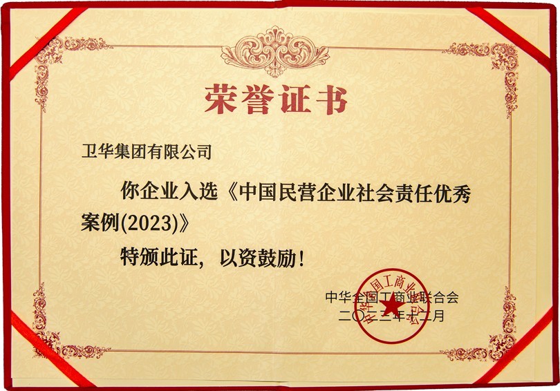 近日,全國工商聯(lián)發(fā)布《中國民營企業(yè)社會(huì)責(zé)任報(bào)告(2023)》,衛(wèi)華集團(tuán)入選《中國民營企業(yè)社會(huì)責(zé)任**案例(2023)》榜單,全國共50家民營企業(yè)入選。